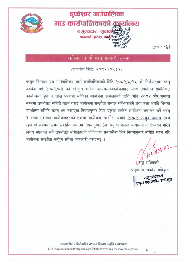 आयोजना कार्यान्वयन सम्बन्धी सूचना।